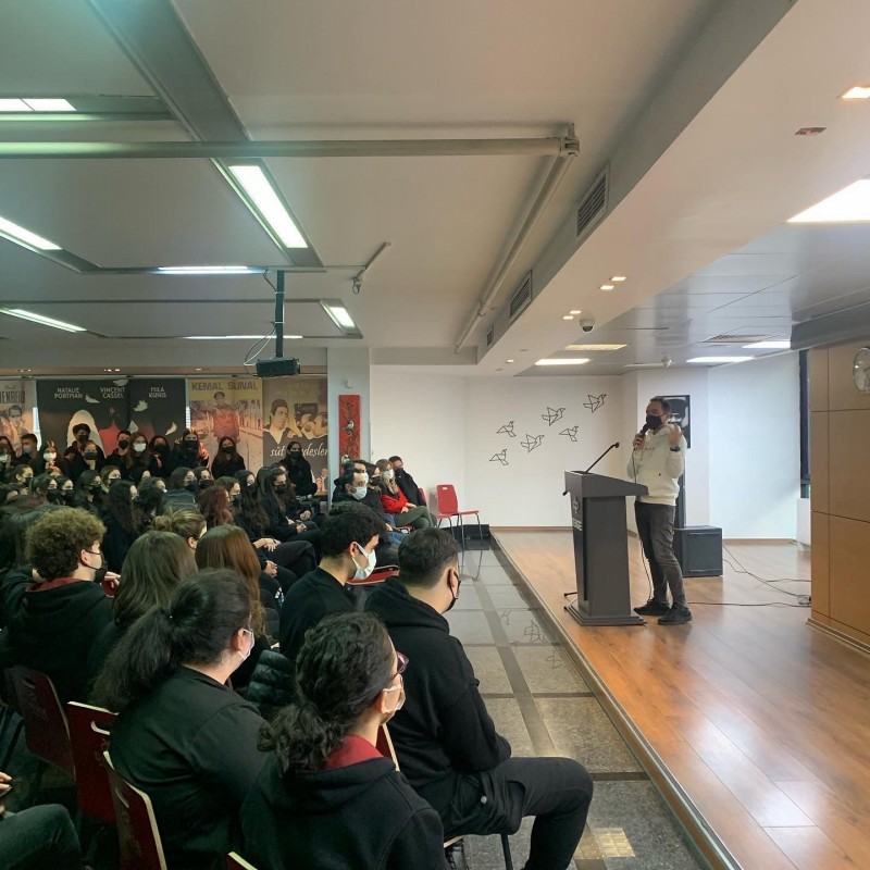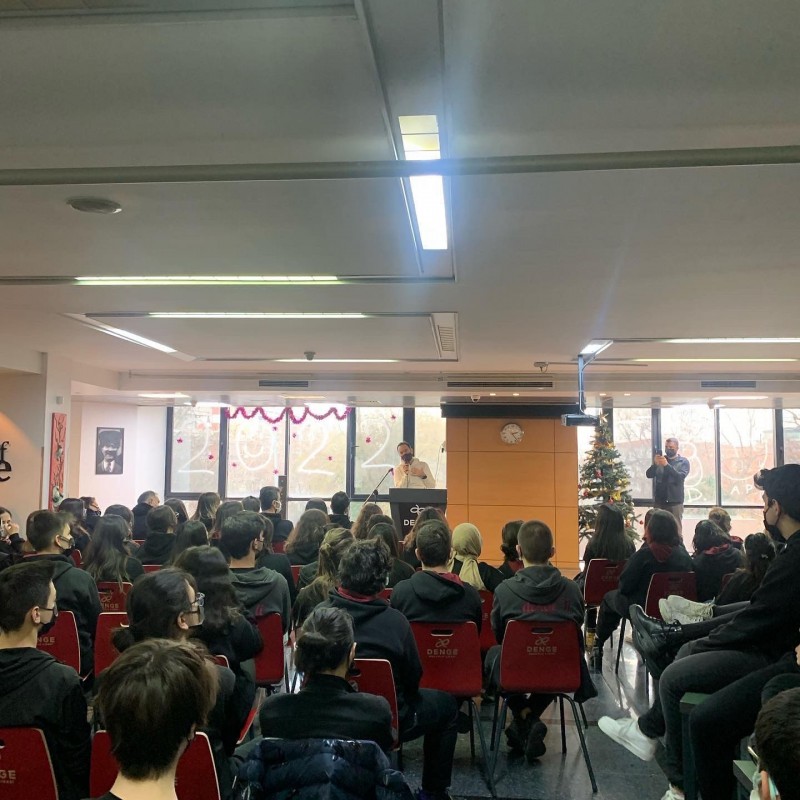 Sosyal sorumluluk projelerimizde yol arkadaşımız olarak seçtiğimiz sevgili Kaan Sekban'ı okulumuzda misafir ettik. Renkli ve toplumsal sorunlara duyarlı kişiliği ile öğrencilerimize ve okulumuza güzel enerjisini yansıttı. Biz de Denge Anadolu Lisesi olarak eğitim ve öğretim anlayışımızın temelini gençlerin hayatlarına dokunabilmek üzerine inşa ettik. Öğrencilerimizin de bu anlayışı benimseyerek, sorunlara kayıtsız kalmamasını ve insanlığa olumlu katkılar yapabilmesini amaçladık ve onlara zamanında atılmış doğru bir adımın tüm yanlışları engelleyebileceğini öğrettik.